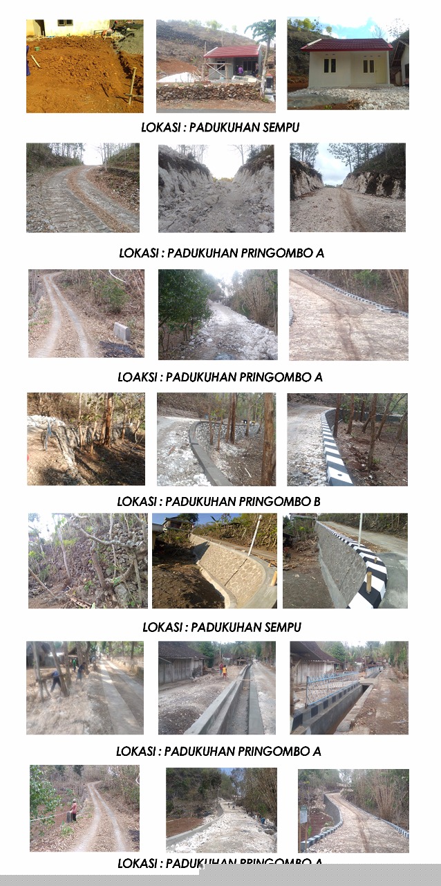 Pringombo, kegiatan Pembangunan Infrastruktur tahun 2018, melaui Anggaran Pendapatan Belanja Desa (APBDes) 2018 yang bersumber Dana Desa, kegiatan meliputi Perumahan Polindes Drainase, Talud Jalan, Corblok dan pengerukan jalan, untuk 10 padukuhan.