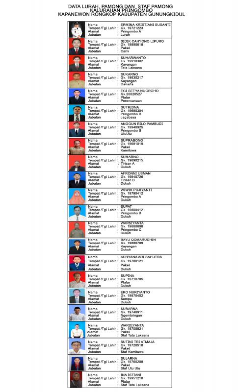 Profil Pamong Kalurahan Pringombo