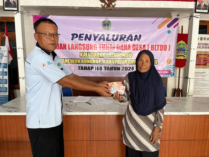 Pringombo, (desapringombo.gunungkidulkab.go.id)-Pemerintah Kalurahan Pringombo Kapanewon Rongkop Kabupaten Gunungkidul, bahwa pada Rabu, (22|4) telah mencairkan Bantuan Langsung Tunai (BLT) Tahun Anggaran 2026. Yang bertempat di Aula Pendopo Balai Kalurahan Pringombo. Bantuan tersebut yang bersumber dari Dana Desa dan diberikan kepada 10 (sepuluh) Keluarga Penerima Manfaat (KPM) sebagaimana telah ditetapkan dalam musyawarah khusus (Muskalsus) pada 19 Januari 2026 yang lalu.